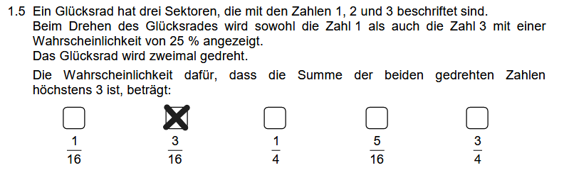 Die Wahrscheinlichkeiten werden nun miteinander addiert, was 0,1875 bzw. 3/16 ergibt.